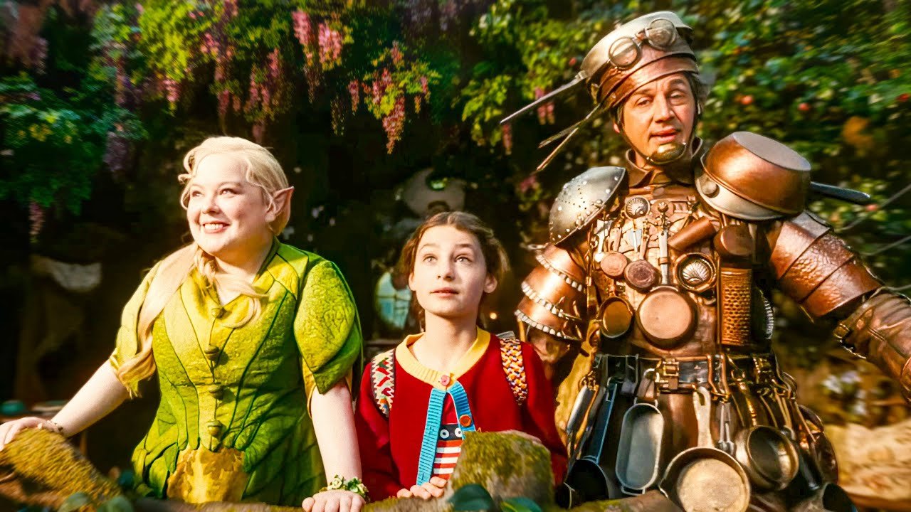 The residents of the tree are some of the film’s most delightful creations. Among them are the cheerful Moonface, the gentle fairy Silky, and the eccentric Saucepan Man—characters brought vividly to life by performers like Nonso Anozie and Nicola Coughlan. Each inhabitant has carved out a whimsical home inside the tree’s twisting trunk, creating a vertical village of oddball personalities and magical surprises. The children quickly form friendships with these characters, who introduce them to the tree’s greatest secret: at its very top lies a magical ladder that leads to a different fantastical land each time it appears. These lands shift and rotate like drifting worlds—sometimes joyful, sometimes strange, and sometimes unexpectedly dangerous—turning every climb into a new adventure.